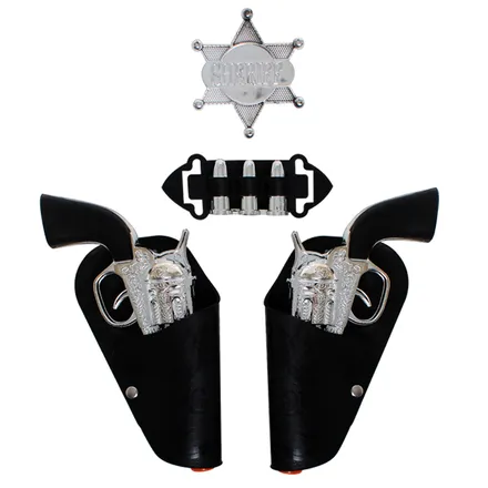Transform playtime into an epic frontier adventure with our complete 7-piece Wild West Gun Set. This premium cowboy collection features two sleek black holsters with silver-detailed toy pistols, a genuine-looking sheriff’s badge, and an authentic bullet belt to complete the look.