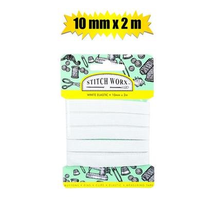 Elevate your crafting and sewing projects with our high-quality white elastic from Stitch Worx. This versatile 10mm width elastic stretches and recovers brilliantly, making it the perfect addition to your sewing kit.