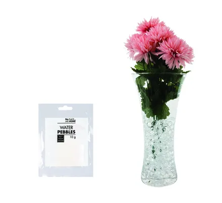 Our Water Pebbles Clear 10g pack brings magical transformation to your floral arrangements and home d?cor. These crystal-clear gel beads expand when soaked in water, creating a stunning visual effect that makes your flowers appear to float in suspended animation.